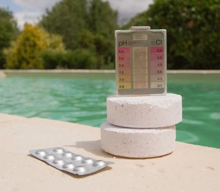 El nivel de cloro en su piscina debe estar entre 1,5 y 2 mg por litro. Se mide mediante tiras o “test de cloro”. También es posible utilizar dispositivos de medición electrónicos mucho más precisos o tabletas DPD que medirán el nivel de los diversos componentes del cloro (cloro activo, cloro combinado, cloro total).