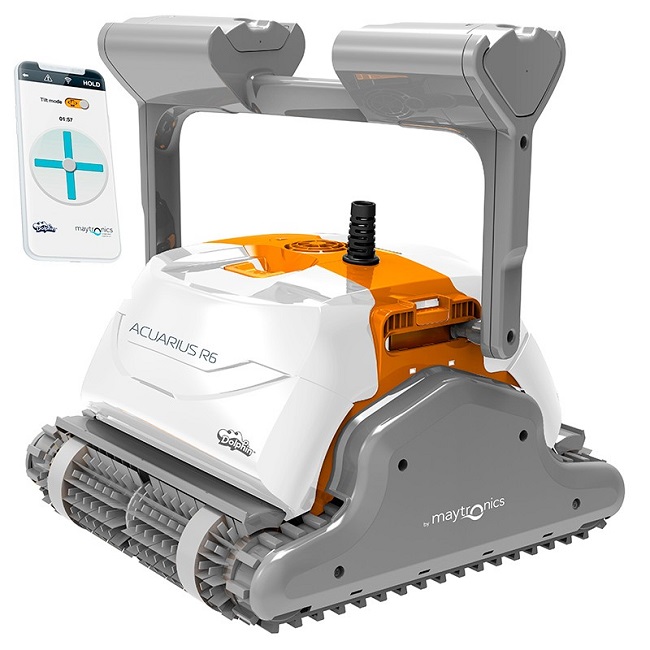 El limpiafondos Acuarius R6 pertence a la gama más alta de toda la serie Dolphin de Maytronics debido a la fiabilidad de sus componentes, su durabilidad, prestaciones y las funciones que desempeña durante su ciclo de limpieza.