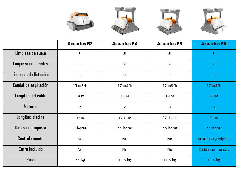 Características técnicas del limpiafondos Dolphin Acuarius R6 de Maytronics: