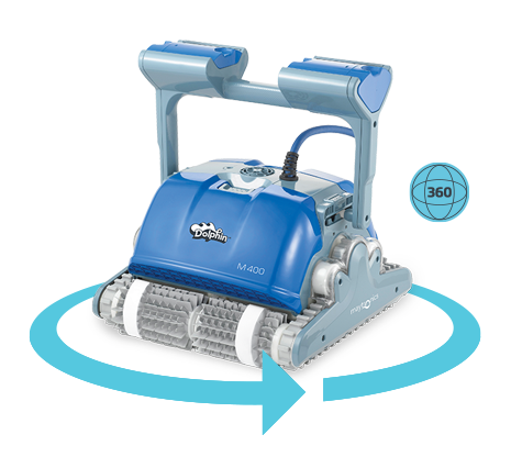 El limpiafondos Dolphin M400 se encarga de la limpieza completa de todo tipo de piscinas de hasta 12 metros de longitud. El Dolphin M400 pertenece a la gama de limpiafondos eléctricos de piscinas de Maytronics.