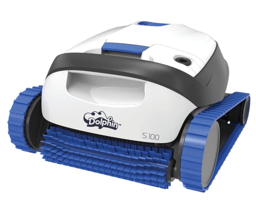 El Dolphin S100 se encarga de la limpieza del fondo, de las pendientes y de las paredes de la piscina. Incorpora un cepillo frotal-bajo que se encarga de la limpieza activa de las partículas/algas/bacterias de toda la superficie del vaso de la piscina. Dispone de un ciclo de limpieza de 2 horas y es completamente automático.