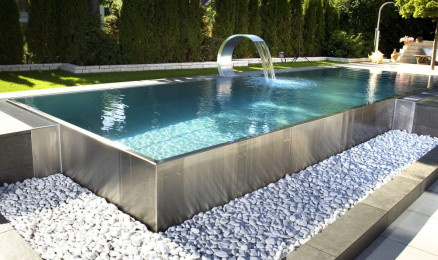 La piscina de acero, en cambio, viene con su estructura lista, pero se debe desenvolver sobre el terreno o incluso en ciertos tipos de piscinas de acero vienen los paneles ya prefabricados y se deben atornillar los unos con los otros sobre el terreno. En este caso también, y al igual que las piscinas de poliéster, se deberá tener hecho el agujero. Es cierto que existen tipos de piscinas de acero y de chapa de acero que van elevadas, pero en este post nos centraremos más en las que se entierran, ya que son más equiparables a las de poliéster.
