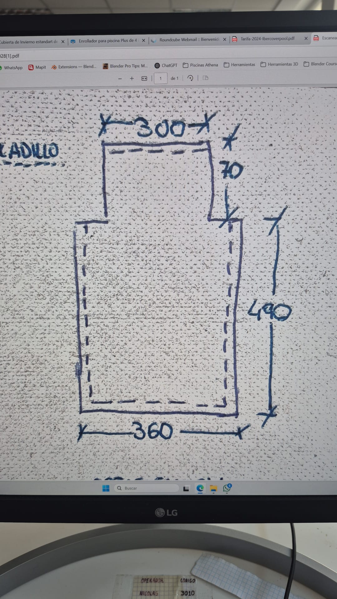 Medidas ( rectángulo ) con esquinas rectas a 90 grados de 3m x 4,60m