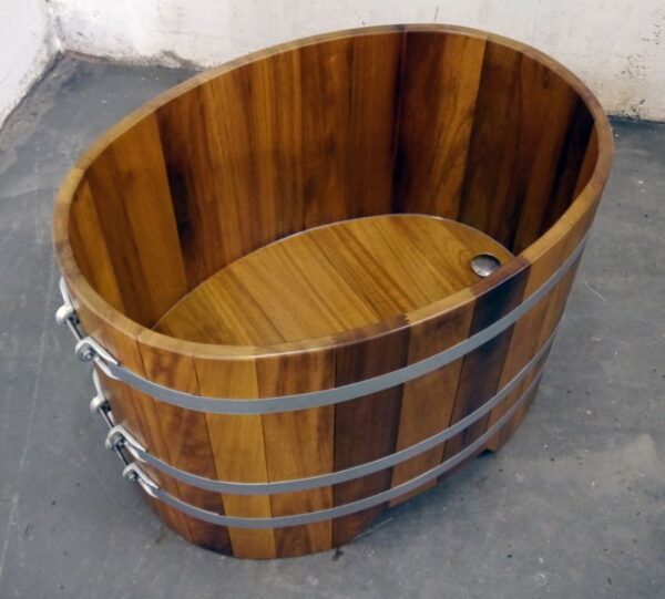 Bañera de madera BWL 100 x 72 x 70(Alt)cm de alerce , con revestimiento transparente y sellado higiénico. Si se utiliza como bañera de ducha privada o publica.