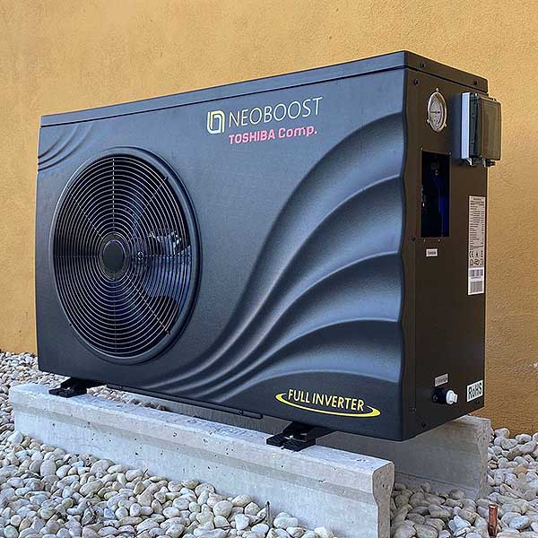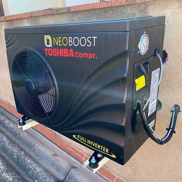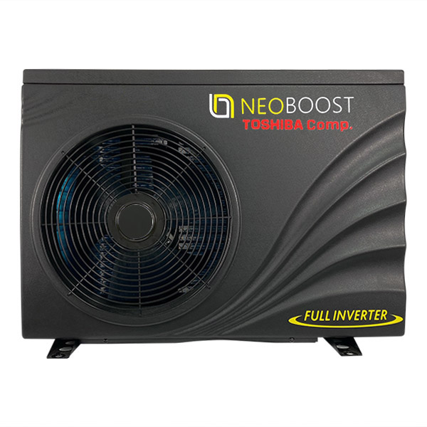 La bomba de calor Neoboost Full Inverter es de última tecnología y dispone de los mejores componentes para garantizar el uso de la piscina tanto si se quiere alargar la temporada de baño como si se desea usar durante todo el año (funcionamiento a partir de -7º de temperatura). Gracias a su compresor Toshiba (funcionamiento con el principio de velocidad variable que optimiza el ahorro energético) de última tecnología permite que podamos disfrutar de la piscina a la temperatura deseada con consumos muy bajos. Su evaporador tiene una función de desescarche automático acelerado que le permite trabajar con temperaturas negativas y su intercambiador es de Titanio de alta tecnología y está garantizado* de por vida (Life Time) contra la corrosión.