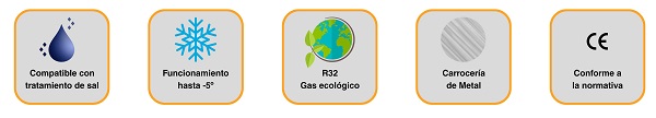 - Gas refrigerante ecológico R32 limpio y de altas prestaciones