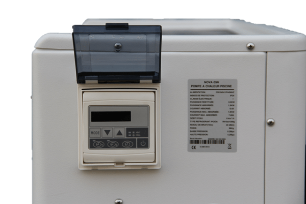 La bomba de calor Nova Booster incorpora un display en la parte lateral en la que se establece el ciclo de funcionamiento, la temperatura deseada y en la que se pueden regular los diferentes parámetros.