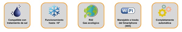 La Bomba de calor W-First de 4 estaciones ( sirve por tanto para todo el año ) Funciona hasta -10º de temperatura de aire exterior. A diferencias de otras bombas de calor de piscinas la W-First dispone de un módulo/interfaz para controlar de forma remota el funcionamiento del aparato. Ideal para piscinas en domicilios secundarios o vacacionales y para tener un control instantáneo sobre la máquina y su correcto funcionamiento.