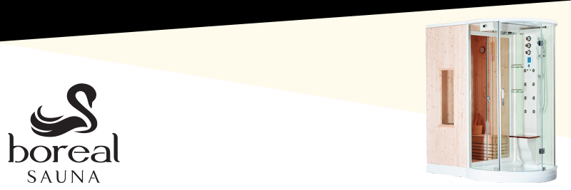 La cabina hidrosauna Boreal SH175I combina la ducha de vapor con la sauna finlandesa.