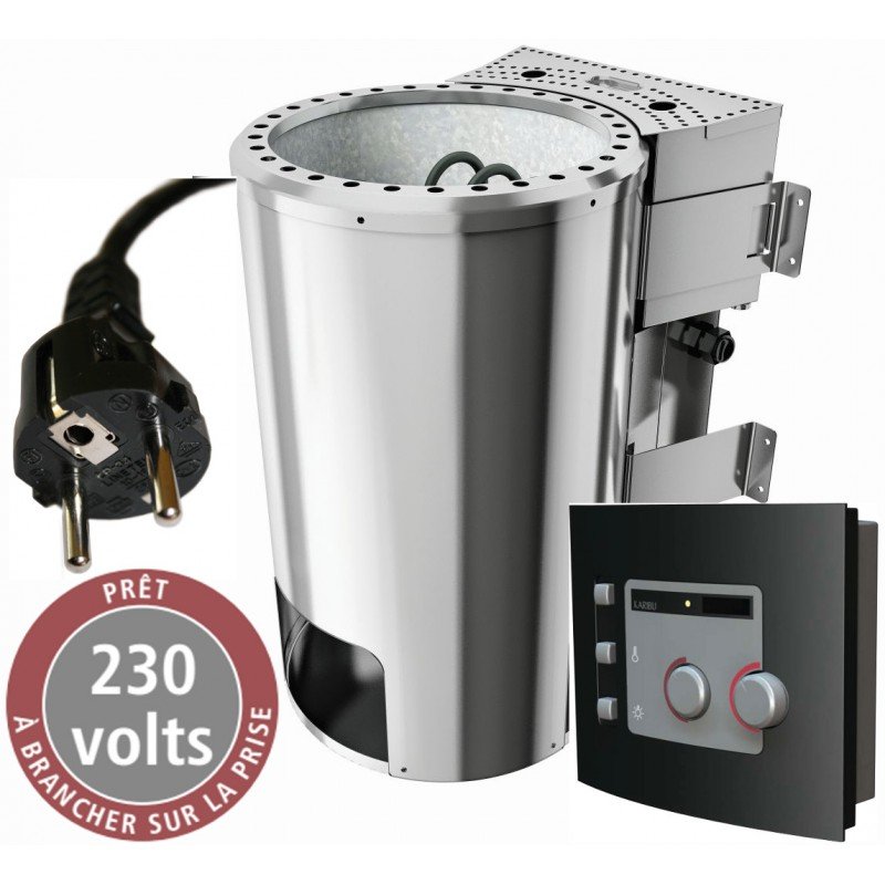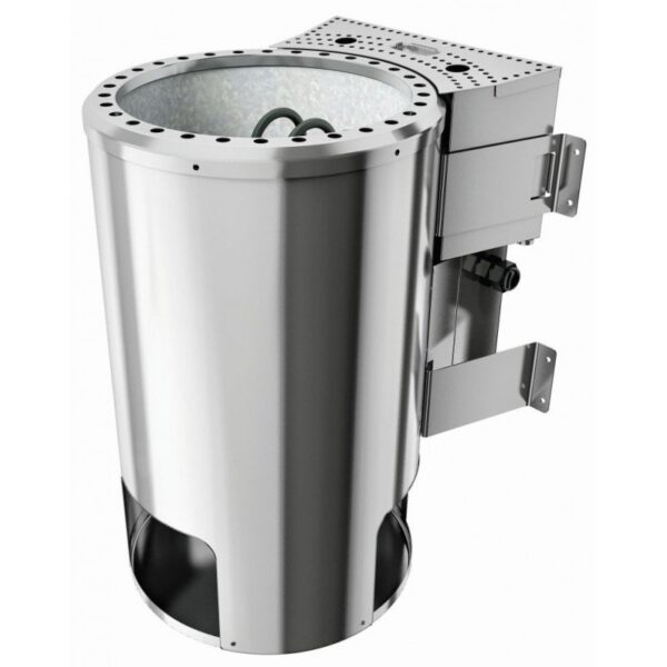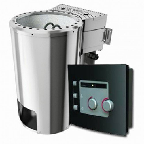 La caldera de sauna 3,6KW combinada BIO con mando externo lista para enchufar con mando integrado esta realizada con acero inoxidable para una perfecta estética de alta gama y un resistencia máxima.