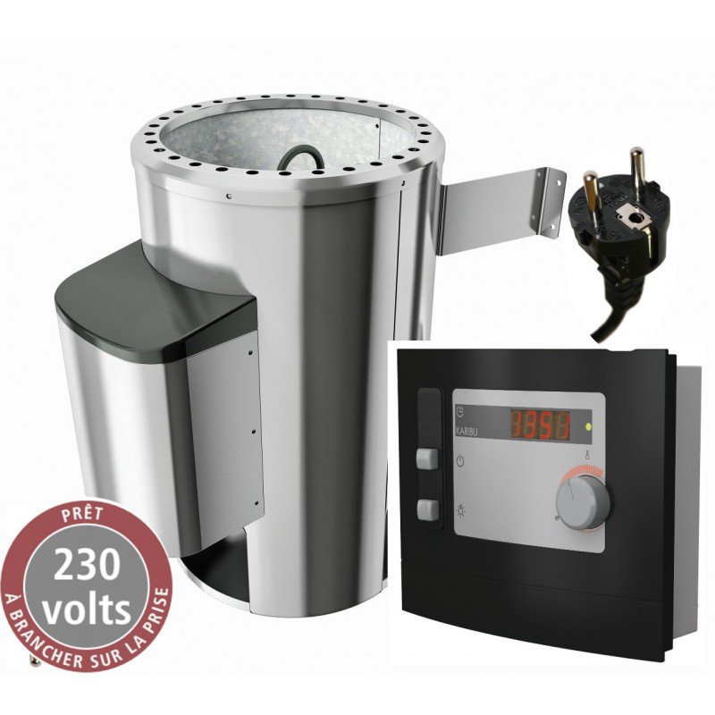 La serie de calderas Plug & Play Karibu es ideal para saunas de 2 a 4,5m3 máximo. Estas calderas permiten el funcionamiento de su sauna sin necesidad de ser instaladas por un electricista.