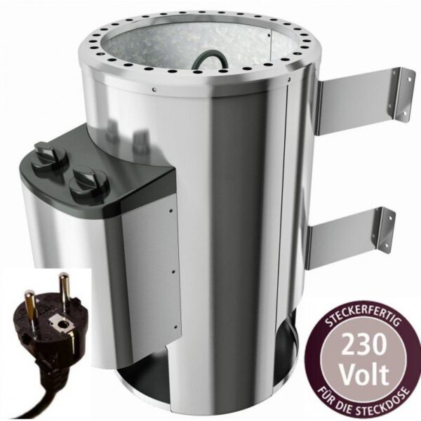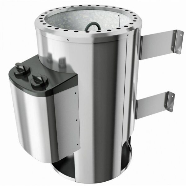 La caldera de sauna 3,6KW lista para enchufar con mando integrado esta realizada con acero inoxidable para una perfecta estética de alta gama y un resistencia máxima.