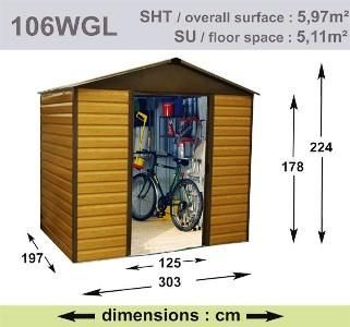 Superficie total al suelo (incluye voladizos de techo) : 303 x 197 x 224 cm – 5,97 m²