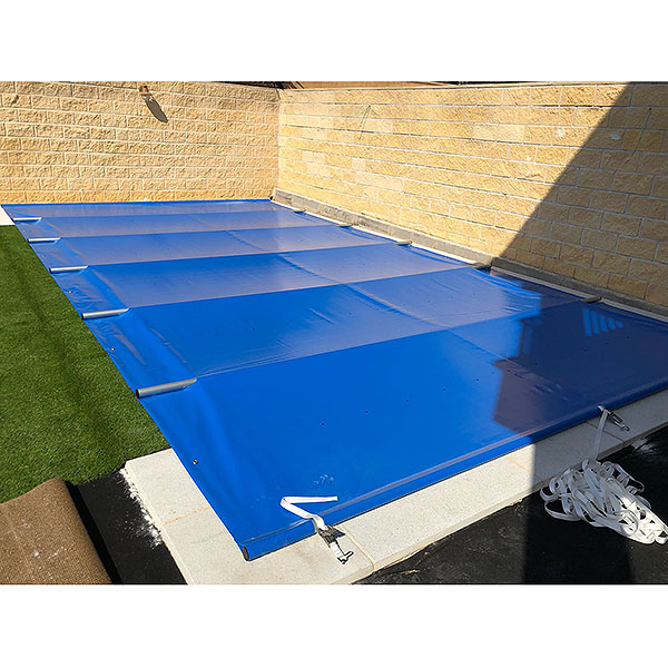 La cubierta de piscina de barras se mantiene en todo el perímetro por sus propias barras y viene con un sistema de anclaje (taco y pitón escamoteable) para ser colocada durante el Invierno y evitar así que pueda desplazarse durante tormentas y así asegurar la máxima resistencia y seguridad. Las cubiertas de barras se pueden realizar de cualquier tamaño en cuanto al mínimo y/o máximo (consultar al vendedor en caso de menos de 20m2).