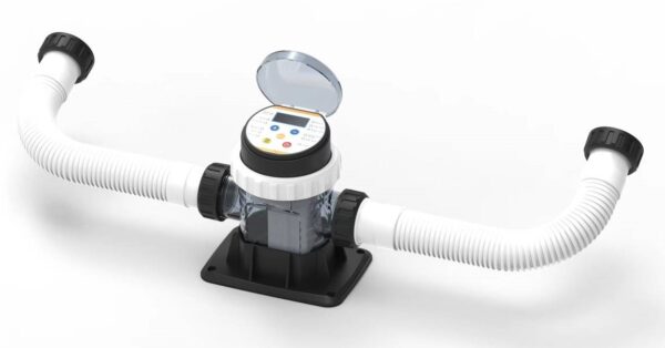 El programa de desinfección del agua del clorador salino AI easy es mediante el tratamiento natural de electrolisis salina que permite prescindir de cloro químico en el agua. Es muy fácil de instalar con tuberías flexibles de 32/38mm mediante abrazaderas y no requiere una instalación con tuberías rígidas aunque se pueda realizar en caso de piscinas enterradas. La producción de cloro de 5g/h es suficiente para piscinas de hasta 25 000 litros de agua. Equipado con electrodos de larga duración ( 7.000h de vida útil ) y sistema de auto limpieza con inversión de polaridad.