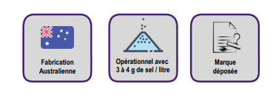 Funciona con 3 gramos de sal por litro de agua lo que implica una concentración de sal en el agua aún más baja. También disponen de un control continuo de la corriente y de un conmutador para el uso con cubierta de piscina.