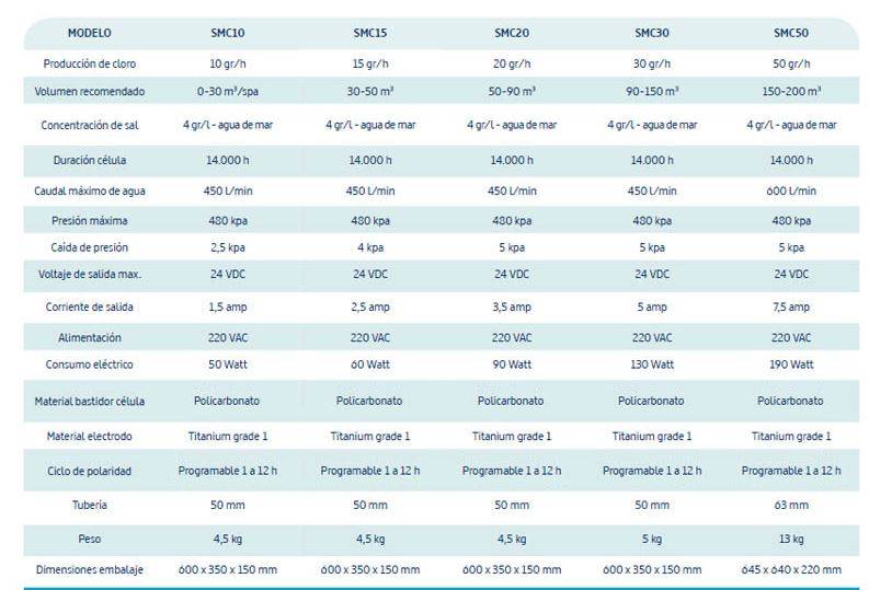Nuevo clorador salino Innowater SMC para piscinas privadas y SPAs disponible en 3 diferentes versiones para piscinas que van desde los 30m3 hasta los 150m3 de capacidad de agua. El novedoso clorador salino Innowater SMC dispone de una función de cloración de choque con lo que puede tratar el agua clorándola de forma rápida, natural y efectiva. Dispone de programación automática de inversión de polaridad y lleva incorporado un contador de horas de funcionamiento midiendo la concentración de la sal en el agua para una producción siempre óptima.