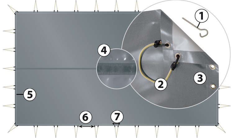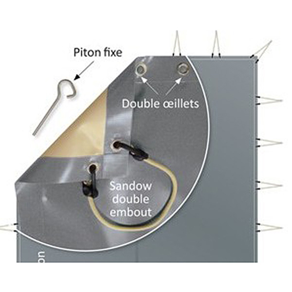 Referente de calidad, concebida y fabricada conforme a la normativa de seguridad NF 90-308, se beneficia de una excelente relación Calidad/Precio. Con su sistema de enganche de dobles ojales con tensores y pitones fijos, estos aportan una tensión perfecta una vez instalada.