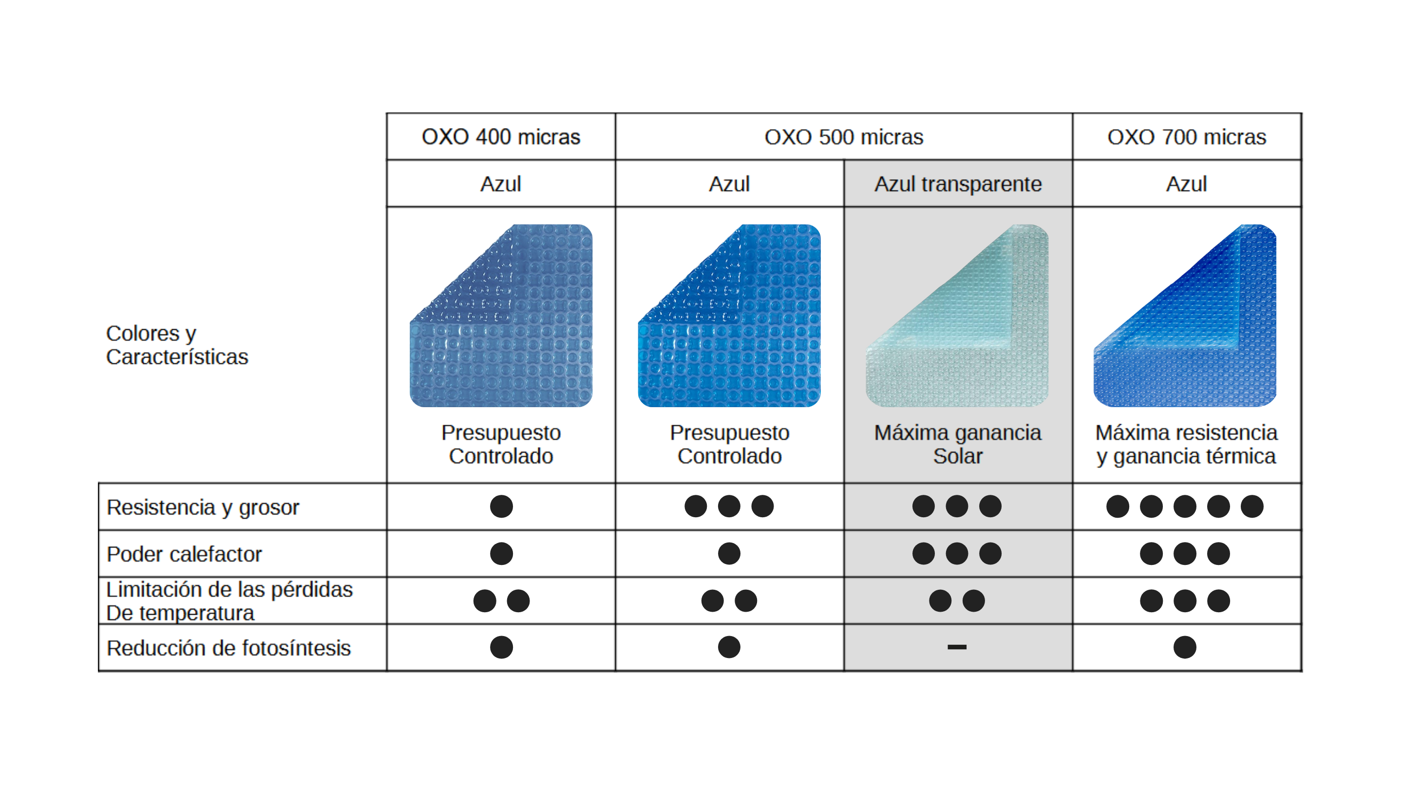 El modelo OXO solar de 500 micras impide/reduce la evaporación en más de un 90%. Esto es especialmente importante ya que repercute directamente en el ahorro de consumo de agua ( destaca en lugares con sequías y restricciones de agua )