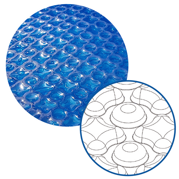 Su burbujas optimiza la flotación sobre el agua gracias al contacto plano. Los intercambios térmicos son reducidos y es por ello que no hay penetración en el agua. Su aislamiento es eficaz gracias a la optimización de la superficie de las burbujas.