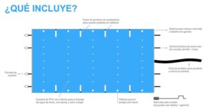 La cubierta para piscinas de barras TOP se mantiene en todo el perímetro por el asentamiento de sus propias barras y viene con un sistema de anclaje (taco y pitón) para ser colocada durante el invierno y evitar así que pueda desplazarse durante tormentas, asegurando la máxima resistencia y seguridad.