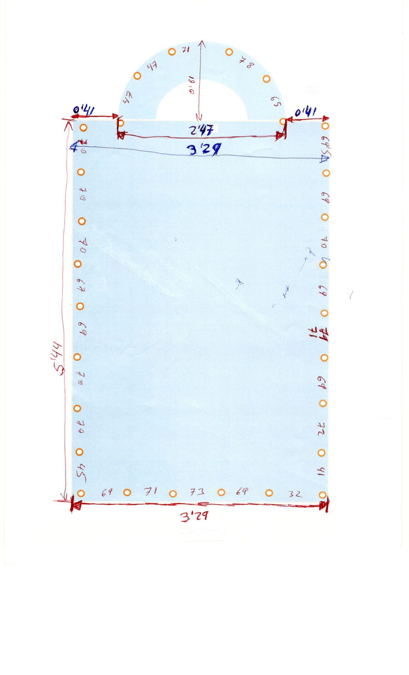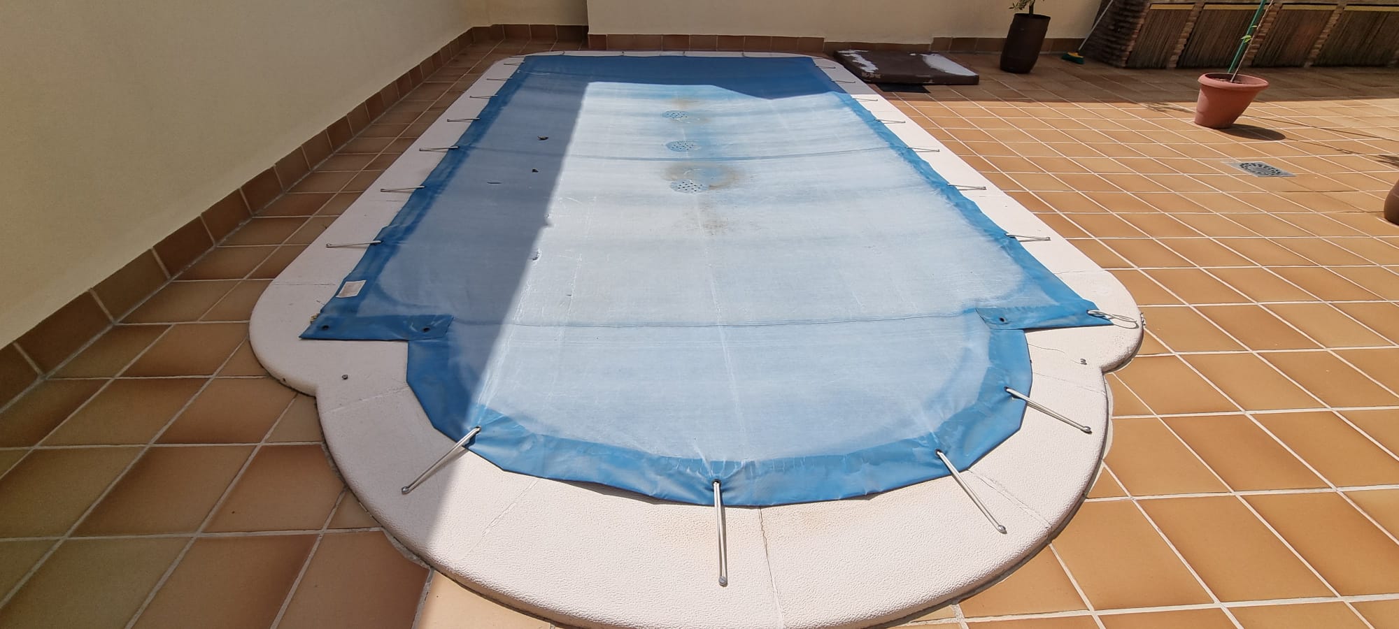 Cubierta de Invierno azul/negra de 580gr/m2 de medidas plano con la misma distancia entre ojales que en el plano