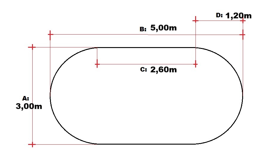 - Medidas: 5,00m x 3,00m ovalada + 15cm de margen en todo el contorno