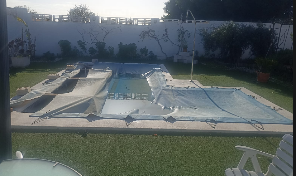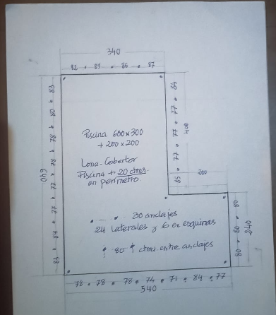 Cubierta de Invierno de protección de 650gr/m2 (Azul/Beige) de medidas Croquis ( Medidas totales de la cubierta ) con los ojales como en el croquis ( con 5cm de tolerancia con respecto a las medidas entre ojales con respecto a las medidas del croquis )
