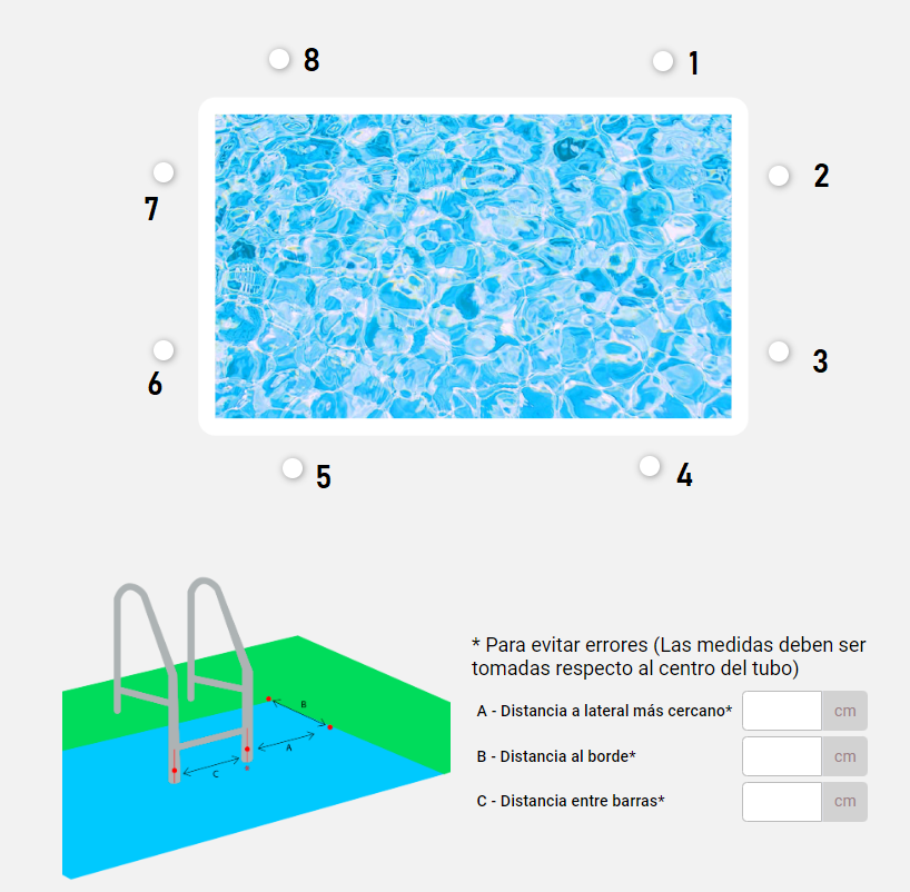 Medidas del vaso interno de la piscina de 8,00m x 5,00m