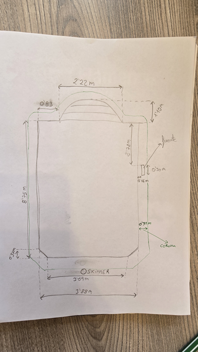 - Crokis +15cm de desborde perimetral ( piscina con forma y romana )
