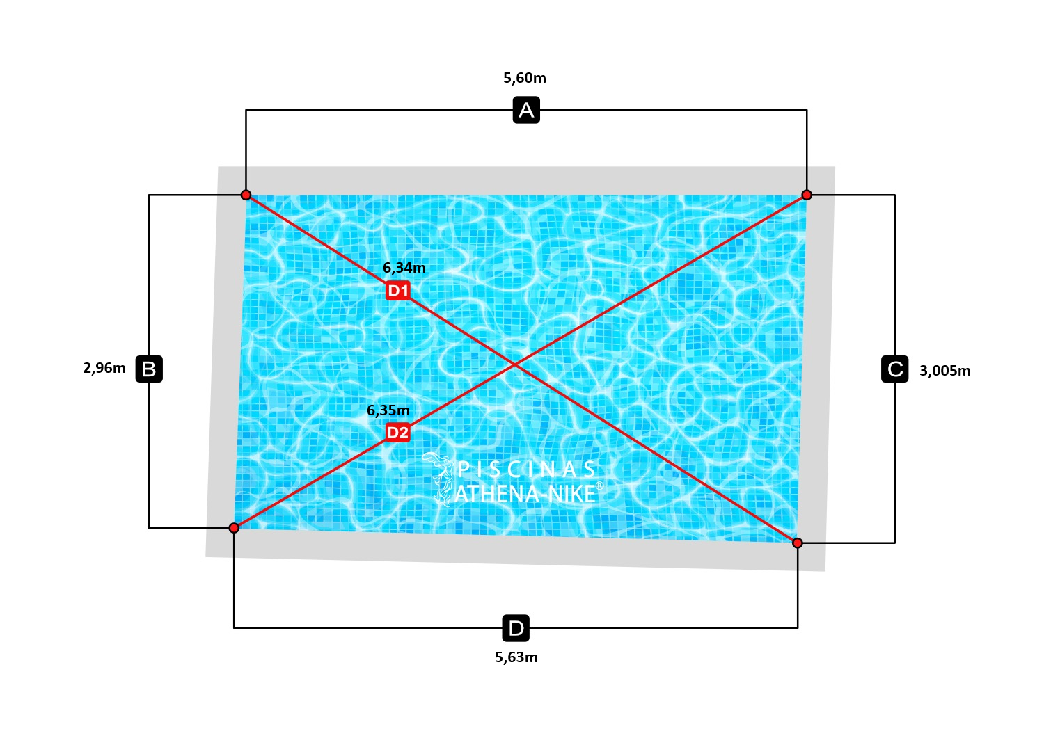 - Medidas internas de la piscina de: 5,63m x 3,01m ( pequeño descuadre )