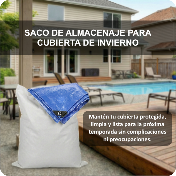REGALO: Saco de almacenaje de regalo con la compra del cobertor ( Preserva y alarga la vida del cobertor, al guardarse en el saco optimiza el espacio y evita que se quede tirado el cobertor y además evita que se puedan perder los componentes que vienen con el cobertor como son los tensores y los anclajes ).