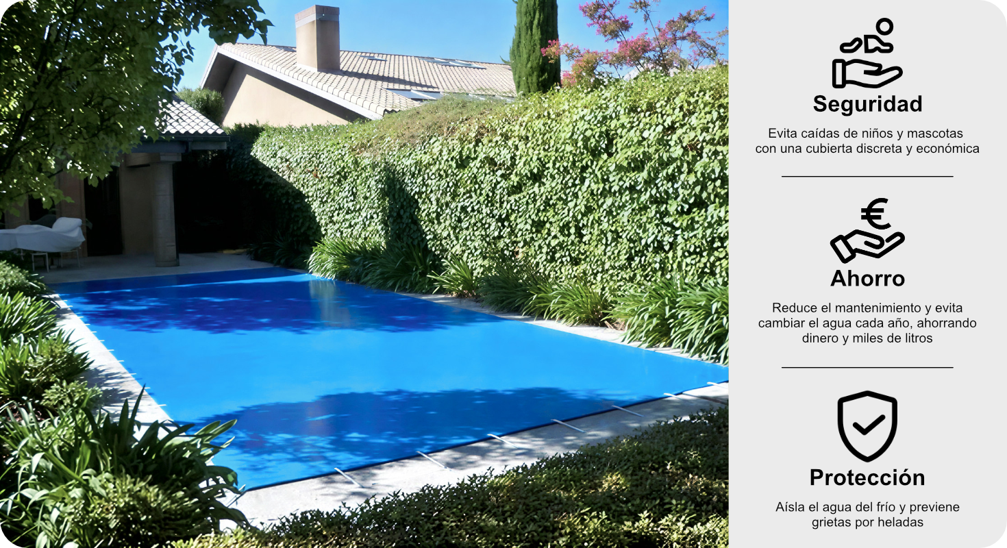Reduce la evaporación y nos permite ahorrar en productos de mantenimiento y tratamiento de choque al inicio de la campaña de Verano