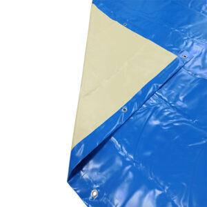 • Cobertor fabricado a medida para la piscina de Ubbink de 6,10m x 4,00m. Forma de óvalo (octogonal alargada).