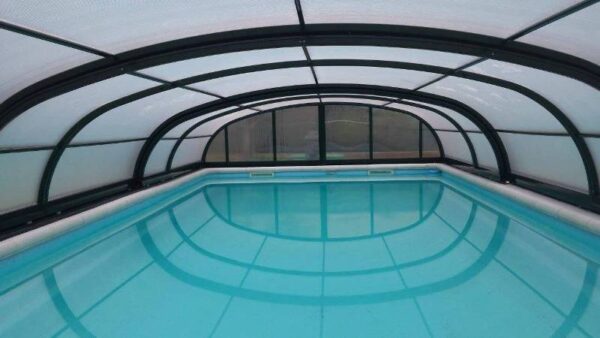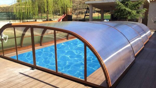 Material con grandes propiedades frente a la corrosión provocada por el ambiente húmedo de la piscina es perfecto para las cubiertas telescópicas de piscina. Perfiles termo-lacados a una temperatura mayor de 600°C a través de polvo de poliéster por proyección electrostática y multicolor El lacado está homologado y certificado por QUALICOAT en el que se utilizan exclusivamente materias primas. La estructura de la cubierta será siempre de aleación de aluminio 6063 según Norma UNE 38 – 337 – 82 con secciones propias diseñadas para su uso en cubiertas telescópicas de piscina.