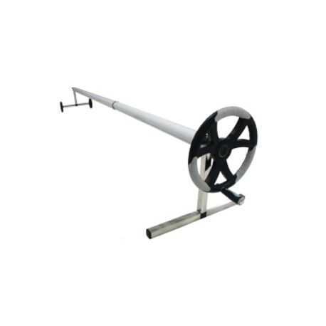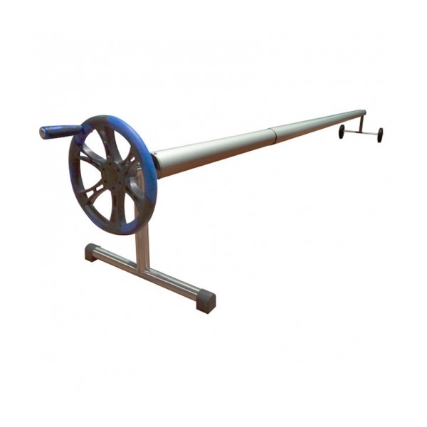 El enrollador piscina se compone de tubos de aluminio preparados para estar al exterior. Sus pies son de acero inoxidable para que las salpicaduras del agua de la piscina no pueda acarrear oxidación en el tiempo e incluye también un sistema de bloqueo de volante. Viene equipado con el kit de fijación con tensores y bloqueos para la manta térmica.