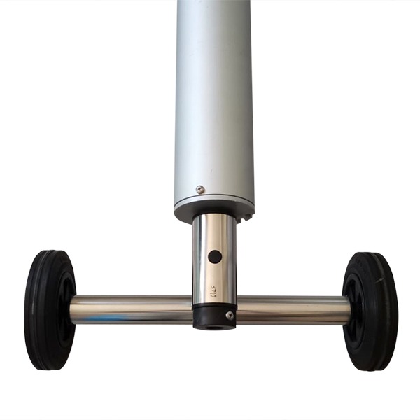El enrollador se compone de tubos de aluminio (alta calidad). Sus pies (https://www.piscinasathena.com/wp-content/uploads/2016/05/Piscinas-sin-obra-precios-1.jpgs) son de acero inoxidable náuticos 316L para que las salpicaduras del agua de la piscina no pueda acarrear oxidación con el tiempo cuando se emplea tratamientos por cloración salina y dispone de un sistema de bloqueo de volante por bulón de enroscado. Viene equipado con el kit de fijación con tensores, cintas, pinzas y bloqueos para la manta térmica.