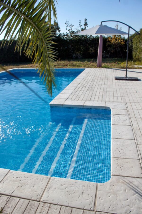Las escaleras de piscina son un equipamiento indispensable. Permiten tanto un acceso cómodo a la piscina en particular para las personas mayores y/o para los niños. Crean sensación de seguridad y evitan el choque térmico al entrar mas despacio en el agua que con una escalera de acero tradicional. Permiten sentarse en el agua y  tumbarse en las escaleras con bancos. También se pueden adaptar impulsores de balneoterapia de tipo aire/agua con blower así como lanzaderas para recibir masajes en una posición relajante y segura. Por fin se podrán equipar también con luces de colores para así poder beneficiarse de los influjos de la cromoterapia.