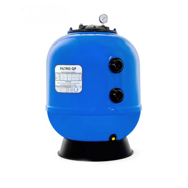 El filtro de arena Azur pertenece a la sección de depuradores de arena laminados en poliéster de alta resistencia y durabilidad de la marca QP. También dispone en su parte superior de un manómetro y tapa en ABS color negro mate con tornillos (mayor resistencia). En su parte inferior tiene un tapón de drenaje y también dispone de una peana de estabilización. El filtro de arena de la gama Azur de QP está disponible en 2 tamaños diferentes (500mm, 600mm). Ideal para todo tipo de piscinas, con fácil adaptación al circuito de depuración ya existente.