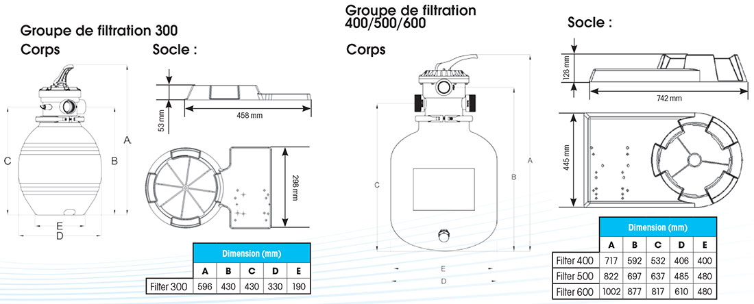 | Diámetro exterior filtro | 300 mm | 400 mm | 400 mm | 500 mm | 600 mm |