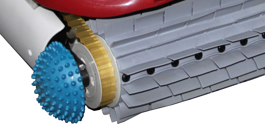 El nuevo robot posee esferas anti enganche en la prolongación de sus cepillos, que le permiten limpiar los rincones difíciles de acceso, evitando así que el robot se enganche en ciertos angulo y evitando también todo contacto de la carrocería con el revestimiento de la piscina.