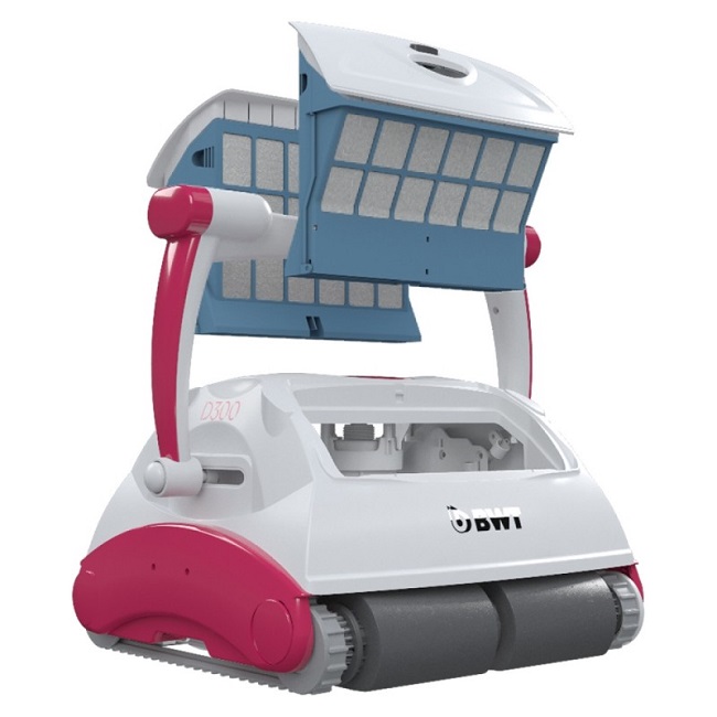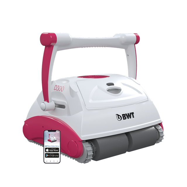 El limpiafondos D300 pertenece a la gama de robots de limpieza eléctricos y automáticos para piscinas de BWT by Aquatron. El modelo D300 destaca por incluir de serie un sistema de filtros 4D para una captación y retención de partículas Ultra-finas (2 micras). Se encarga de la limpieza del fondo, de las pendientes, de las paredes y de la línea de flotación superior de toda la piscina.