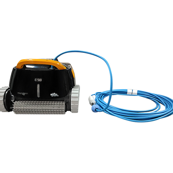 El Limpiafondos Dolphin E50I de Maytronics incluye un cable de 18 metros de longitud. Se recomienda su uso para piscinas de cualquier tipo y forma. Su tecnología le permite sortear todo tipo de obstáculos y llevar a cabo una limpieza eficaz, óptima y rápida gracias a sus numerosos programas de limpieza (1H, 2H y 2,5H). Su caudal de aspiración es de 15m3/hora e incorpora 2 motores. En este modelo de la serie E de Dolphin se incluye de serie el carrito de transporte para poder llevarlo fácilmente a la piscina y para guardarlo posteriormente.