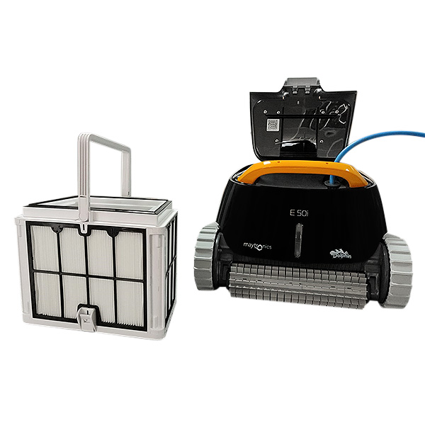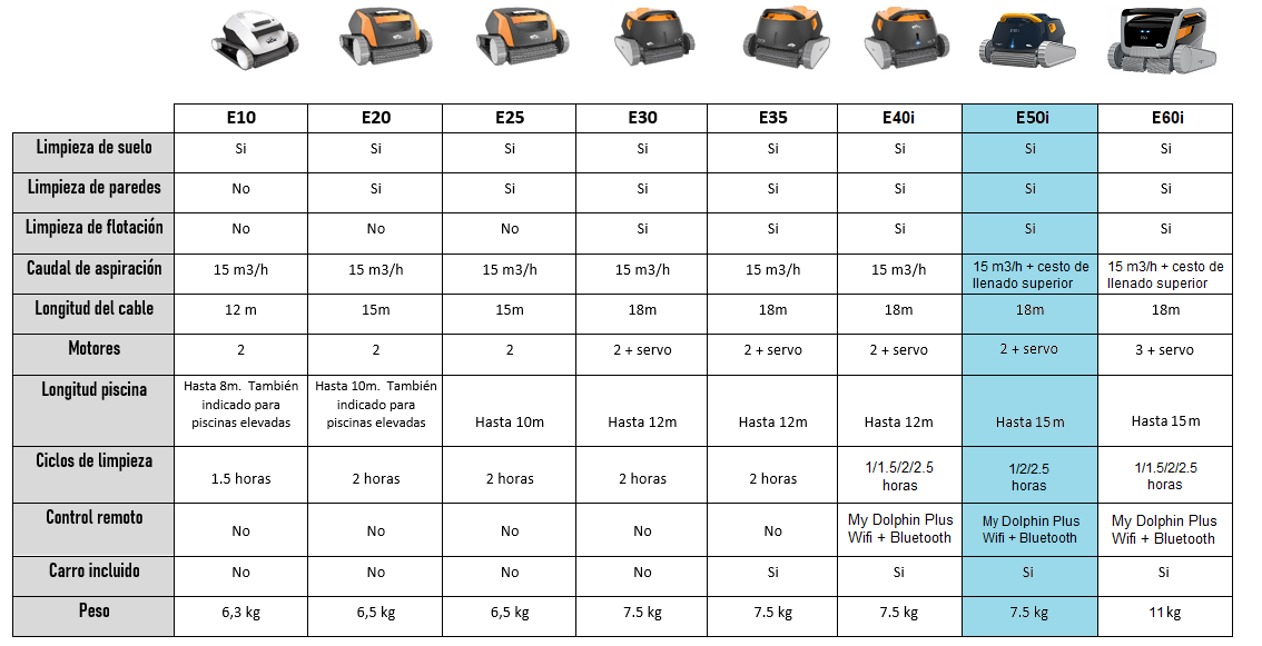 El limpiafondos Dolphin E50I es un robot de limpieza completamente automático de última generación de la serie Dolphin que se encarga de la limpieza completa del vaso de la piscina. Es un top de gama con todas las funciones de control, limpieza y también en cuanto a las garantías de sus componentes. Este limpiafondos eléctrico incorpora un sistema de navegación y manejabilidad a través de la aplicación de Smartphone con Wifi y Bluetooth. Dispone de un indicador de filtro lleno que se puede monitorizar también a través de la App My Dolphin.