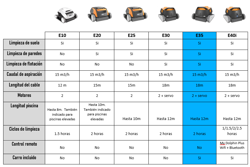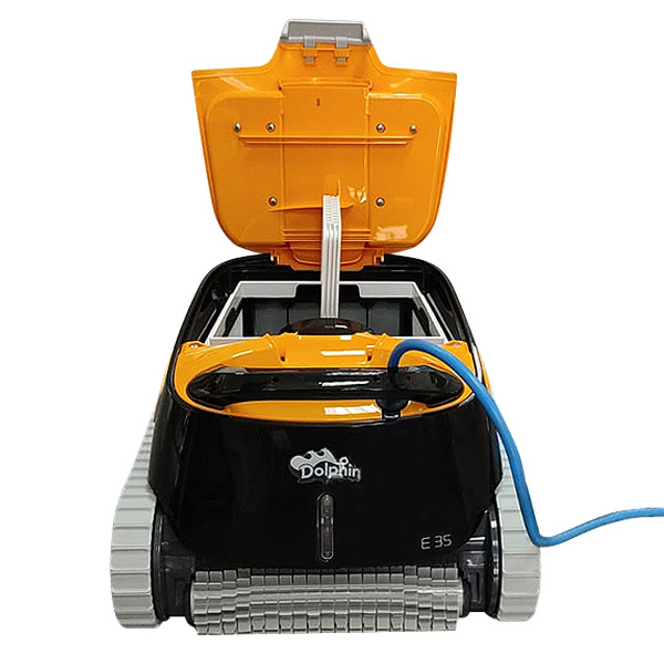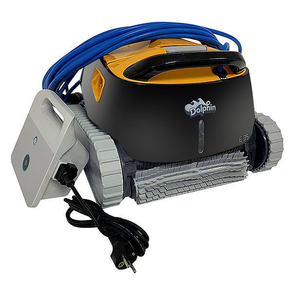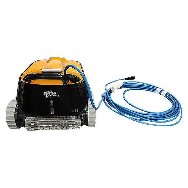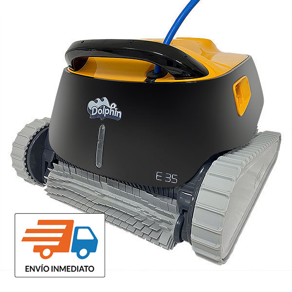 El limpiafondos Dolphin E35 es un robot automático para piscinas que se encarga de la limpieza completa de todo el vaso de la piscina. Incorpora un sistema de navegación inteligente para optimizar su rendimiento en cada uso (PowerStream). Se puede emplear tanto en piscinas de obra de pequeño y mediano tamaño como en piscinas elevadas y desmontables. Su diseño compacto y su sistema de tracción total hacen del E35 un modelo compatible para todo tipo de superficies y revestimientos de piscina. El limpiafondos eléctrico E35 pertenece a la serie Dolphin de Maytronics destacando por la calidad de sus componentes y por sus amplias posibilidades.
