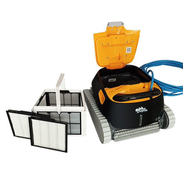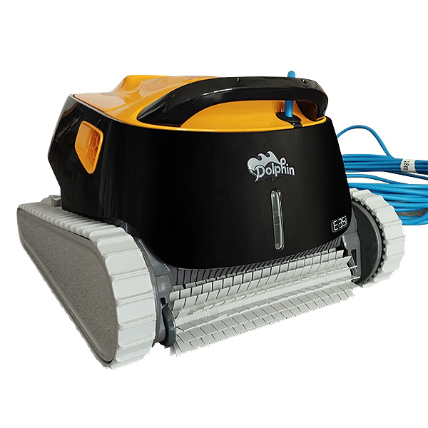 El limpiafondos Dolphin E35i es un robot automático para piscinas novedoso que incorpora el control del mismo a través de la App My Dolphin y que se encarga de la limpieza completa de todo el vaso de la piscina. Incorpora un sistema de navegación inteligente para optimizar su rendimiento en cada uso (PowerStream). Se puede emplear tanto en piscinas de obra de pequeño y mediano tamaño como en piscinas elevadas y desmontables. Su diseño compacto y su sistema de tracción total hacen del E35 un modelo compatible para todo tipo de superficies y revestimientos de piscina. El limpiafondos eléctrico E35i pertenece a la serie Dolphin de Maytronics destacando por la calidad de sus componentes y por sus amplias posibilidades.