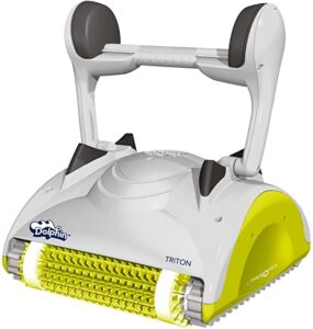 El limpiafondos Dolphin Triton incorpora un asa superior inclinable para diferentes situaciones de limpieza y manejabilidad. Su doble sistema de cepillado hacen de este un aparato de limpieza que desincrusta y decapa la suciedad acumulada como son las algas y las baterias. Su acceso a los filtros es por la parte inferior y su mantenimiento es muy simple. Es ideal para poder manejarlo con facilidad ya que incorpora además de su asa y el cable con boya de recogida un carrito de transporte.