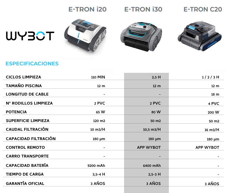 El limpiafondos E-TRON i30 inalámbrico de Wybot es un referente en la limpieza de piscinas. De diseño compacto y robusto, el modelo I30 de Wybot no requiere de cables ni mangueras ni bombas de refuerzo para su funcionamiento óptimo.
