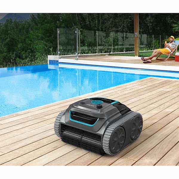 Destaca por incluir el control del equipo a través de la APP móvil que funciona de forma completamente independiente sin necesidad de un equipo adicional. Su motor de 3 ejes ofrece una experiencia de limpieza óptima y potente, adaptándose a todo tipo y formas de piscinas. Se encarga de la limpieza completa del vaso de la piscina ( hasta 50m2 de superficie ). Limpia tanto el fondo como las paredes y la línea superior de agua. Configura la ruta de limpieza según la forma que tenga la piscina.