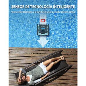 El Limpiafondos i30 dispone de un sensor inteligente que le hace aproximarse a la pared de la piscina cuando la batería está por debajo del 10% y así se puede recoger con el gancho para llevarlo al punto de carga nuevamente.
